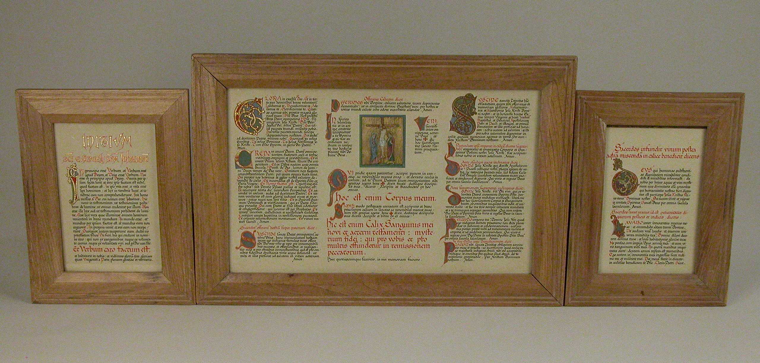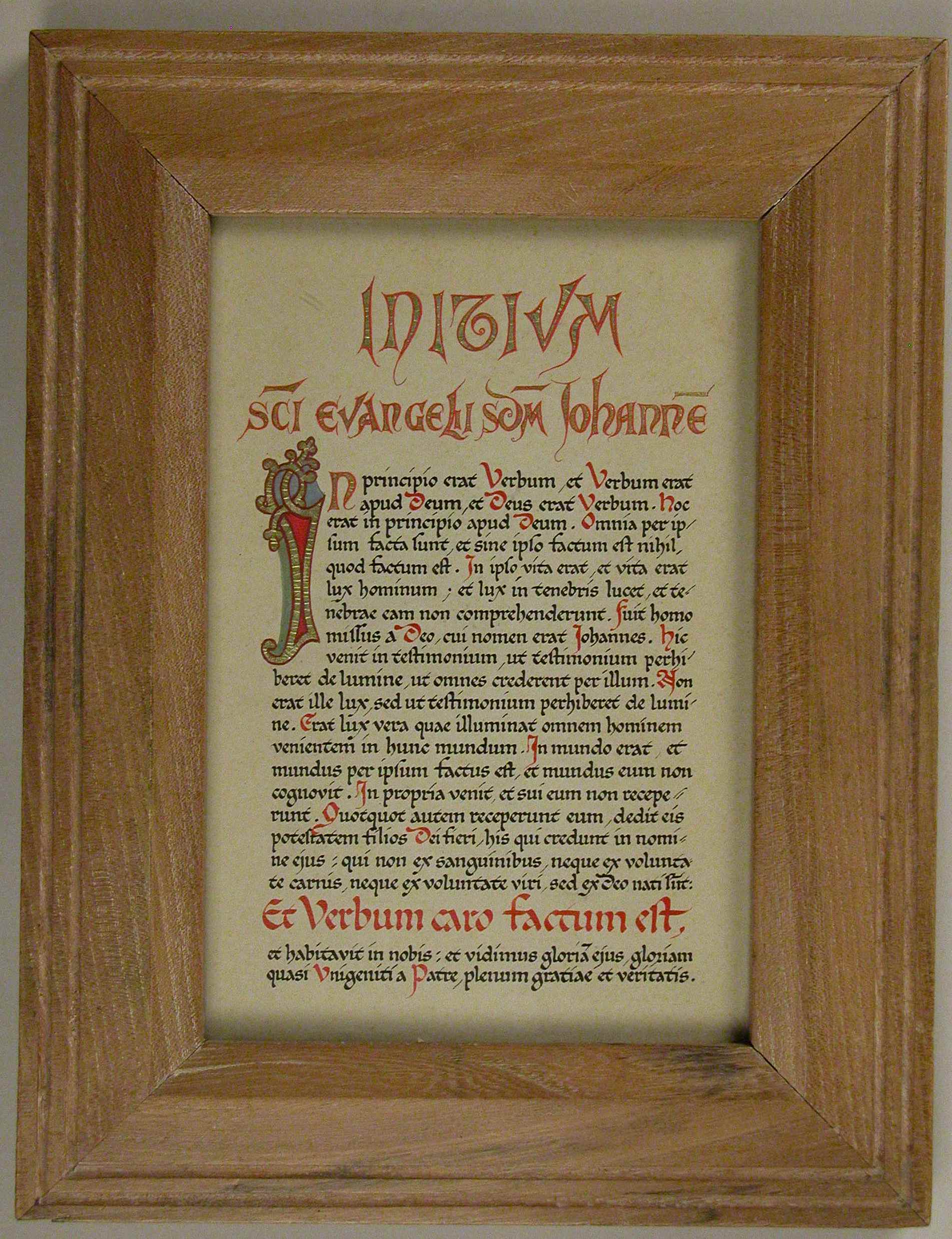 Canonbord met kalligrafie in zwart en rood, kapitalen met bladgoud, met "Initium sci evangelii sdm Johanne(m) ..."