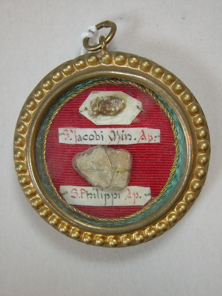 Reliekmedaillon met relieken ex oss. H. Jacobus Minor en H. Filippus apostel