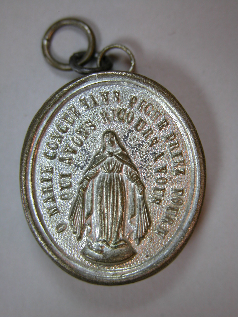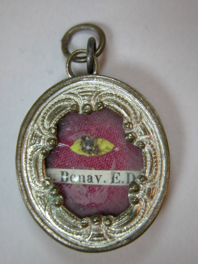 Reliekmedaillon met reliek ex indumentis (kleed) H. Bonaventura, op achterzijde beeltenis van Onbevlekte Ontvangenis van Maria