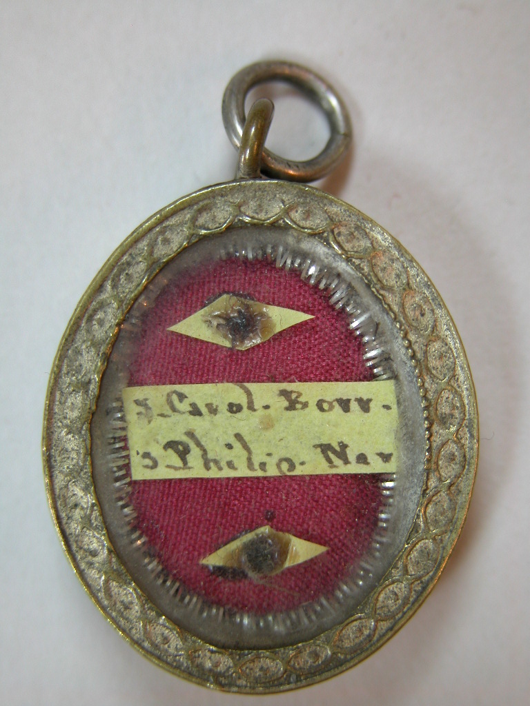 Reliekmedaillon met relieken ex veste H. Carolus Borromaeus en H. Philippus Neri, op achterzijde twee H. Harten