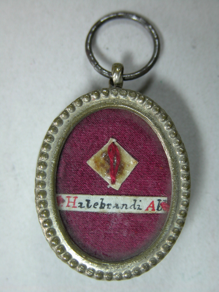 Reliekmedaillon met reliek ex oss. H. Hatebrand, abt, op achterzijde H. Hart