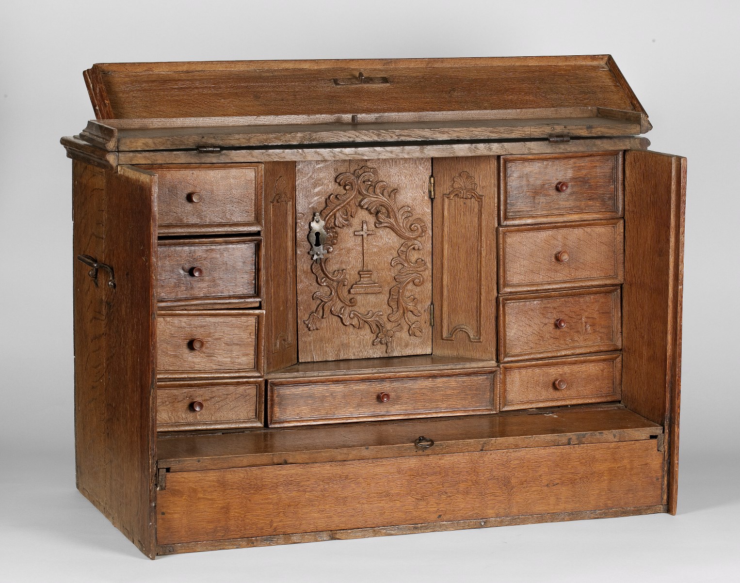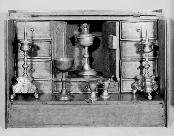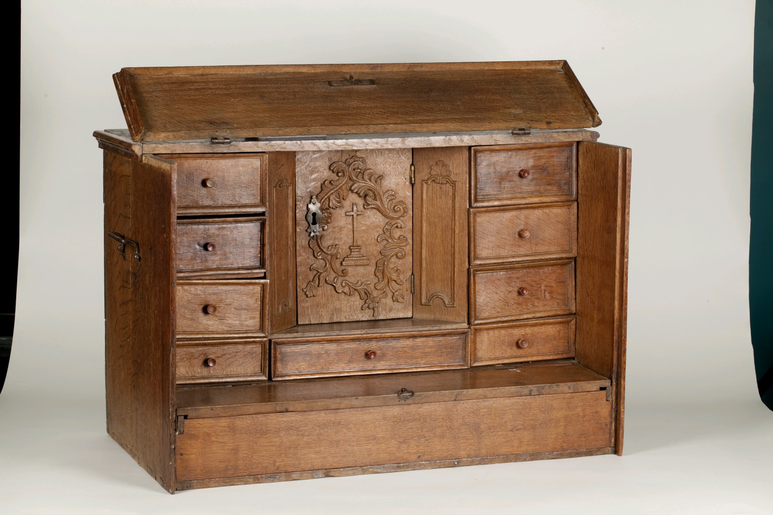 Altaarkist met tabernakel (altare portabile), tabernakeldeur versierd met kruis