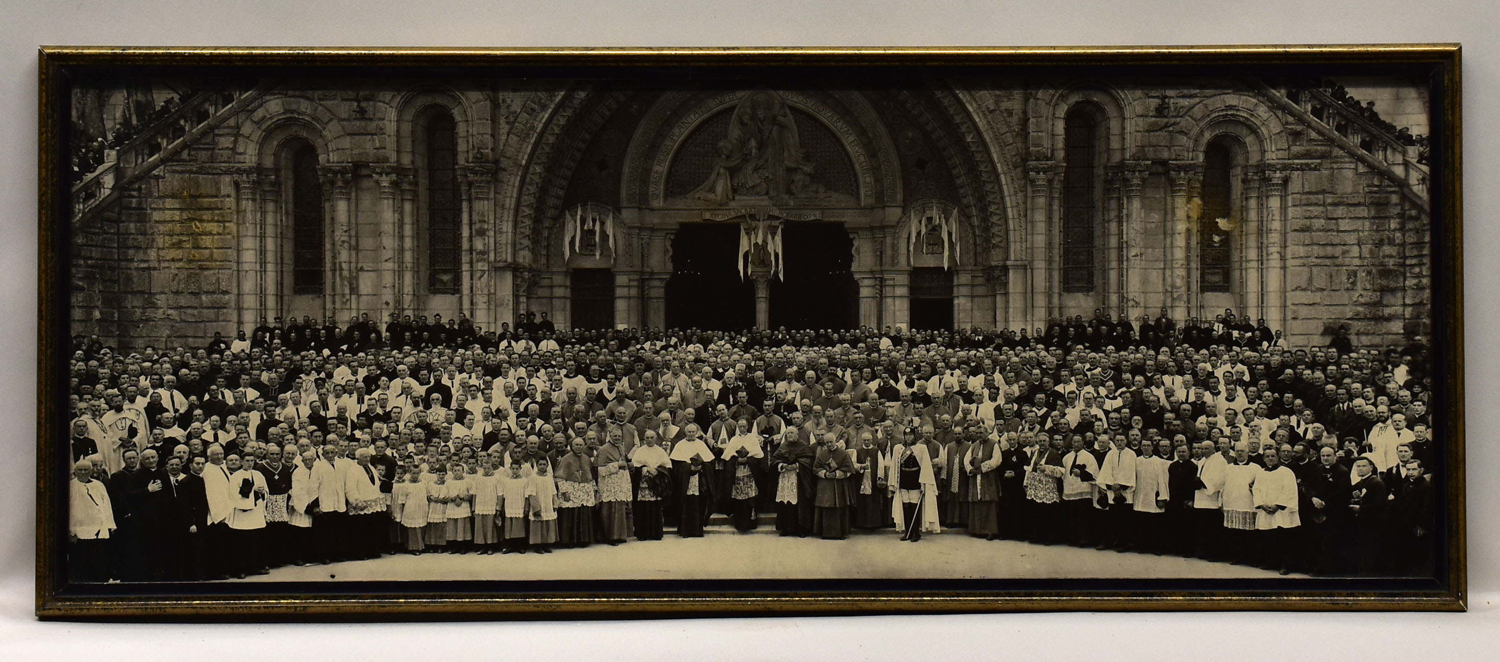 Groepsfoto, genomen te Lourdes, zaterdag 27 april 1935, met Mgr. Pacelli, Van Roey en Ottaviani