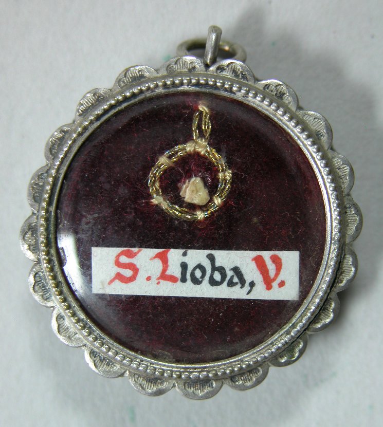 Reliekmedaillon met reliek ex oss. H. Lioba