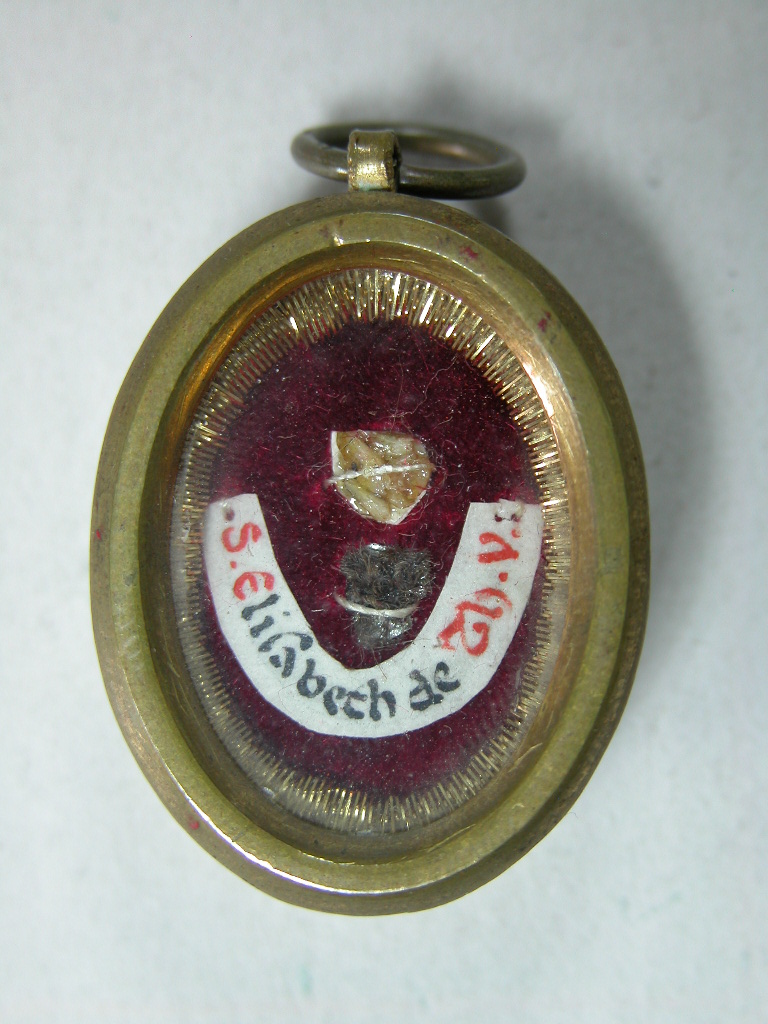 Reliekmedaillon met reliek ex oss. en ex mantello H. Elisabeth van Thüringen
