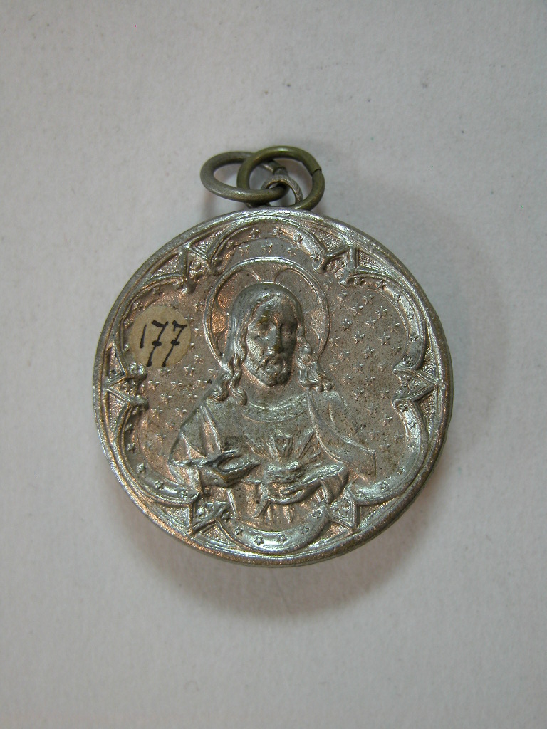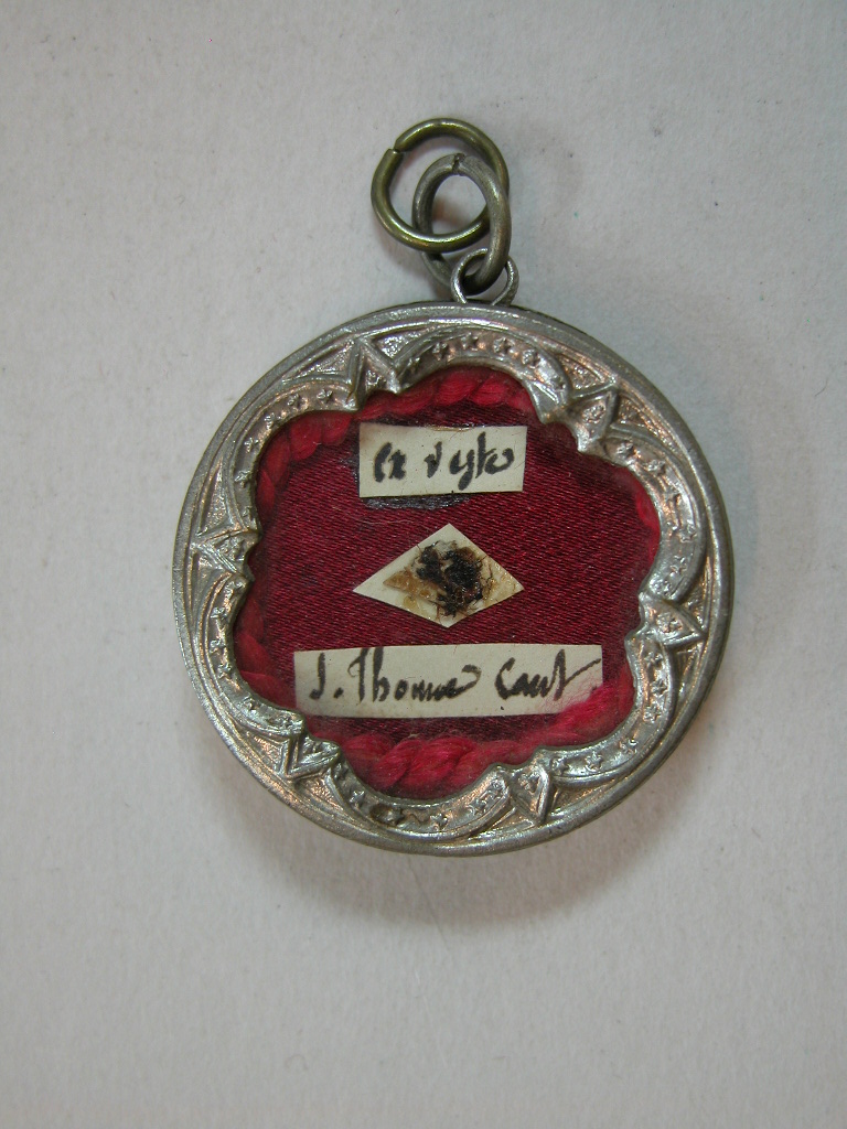 Reliekmedaillon met reliek ex veste H. Thomas Becket, bisschop en martelaar, op achterkant beeltenis van Christus Heilig Hart