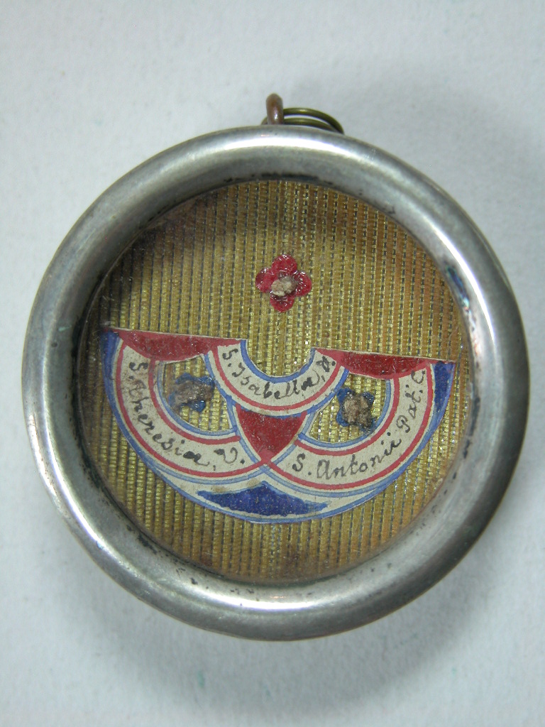 Reliekmedaillon met relieken ex oss. HH. Antonius van Padua, Theresia en Isabella