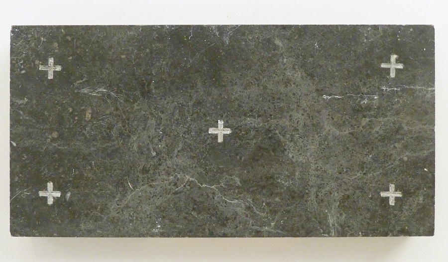 Altaarsteen met "Sepulchrum Sanctorum Martyrum Modesti et Victoris" op de zijkant geplakt