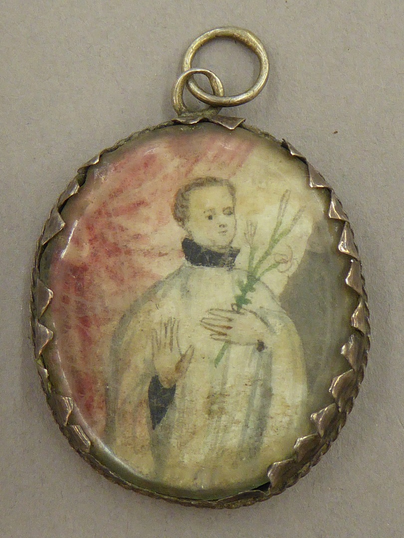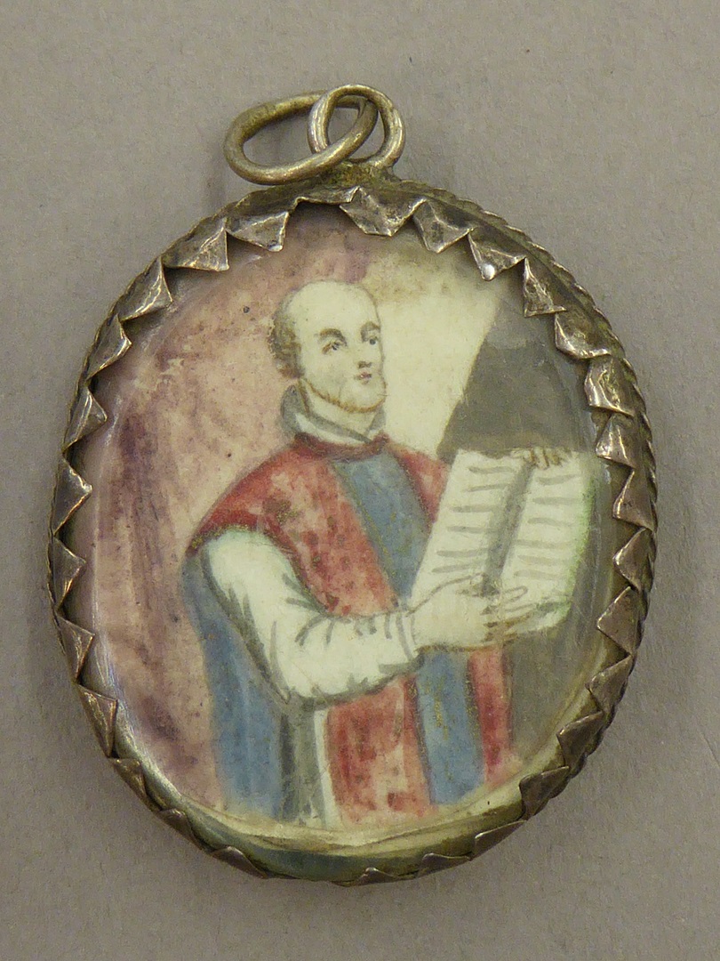 Ovaal medaillon met geestelijke met boek, kz. geestelijke met lelietak