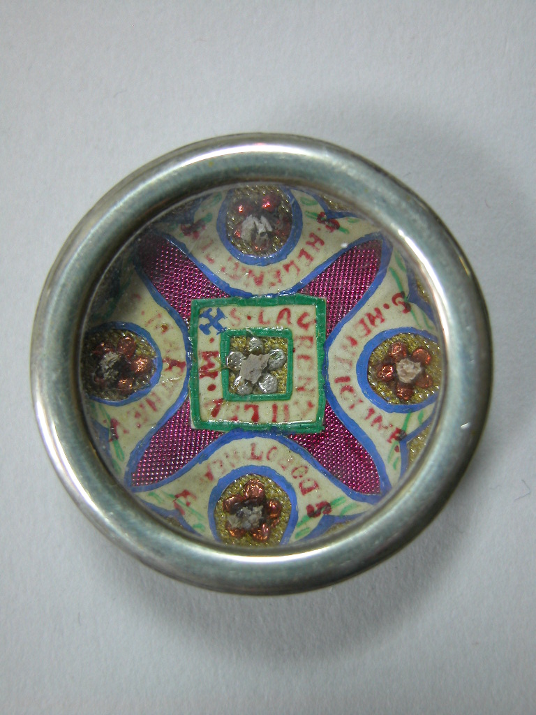 Reliekmedaillon met relieken ex oss. HH. Laurentius, Henricus II van Duitsland, Dorothea, Helena en Martha