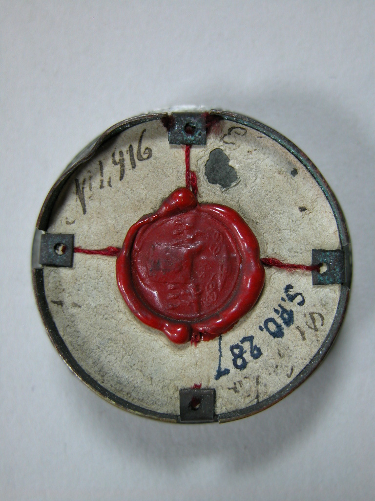 Reliekmedaillon met reliek ex cingulo Maagd Maria, ex pallio H. Jozef en ex ossibus H. Gerardus abt