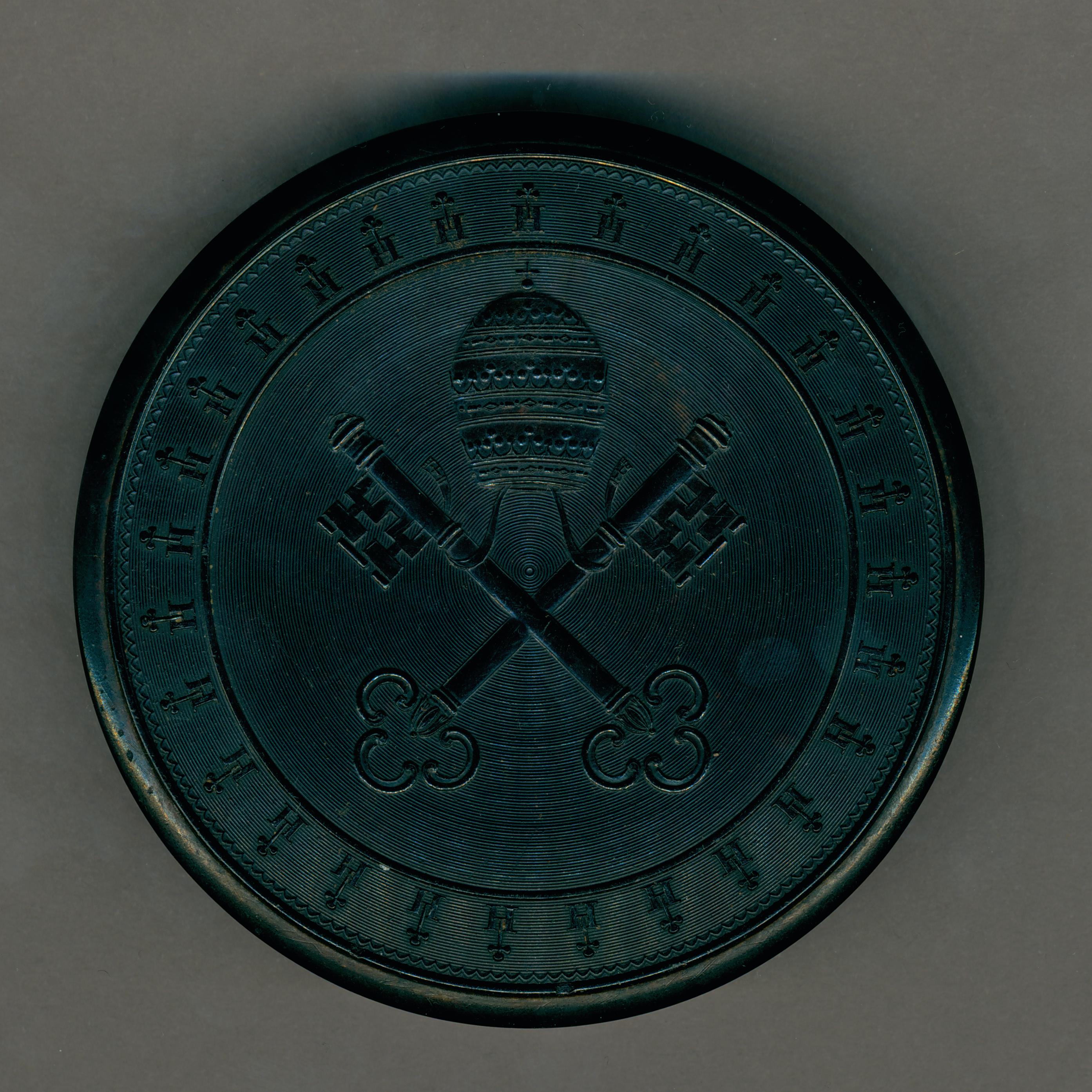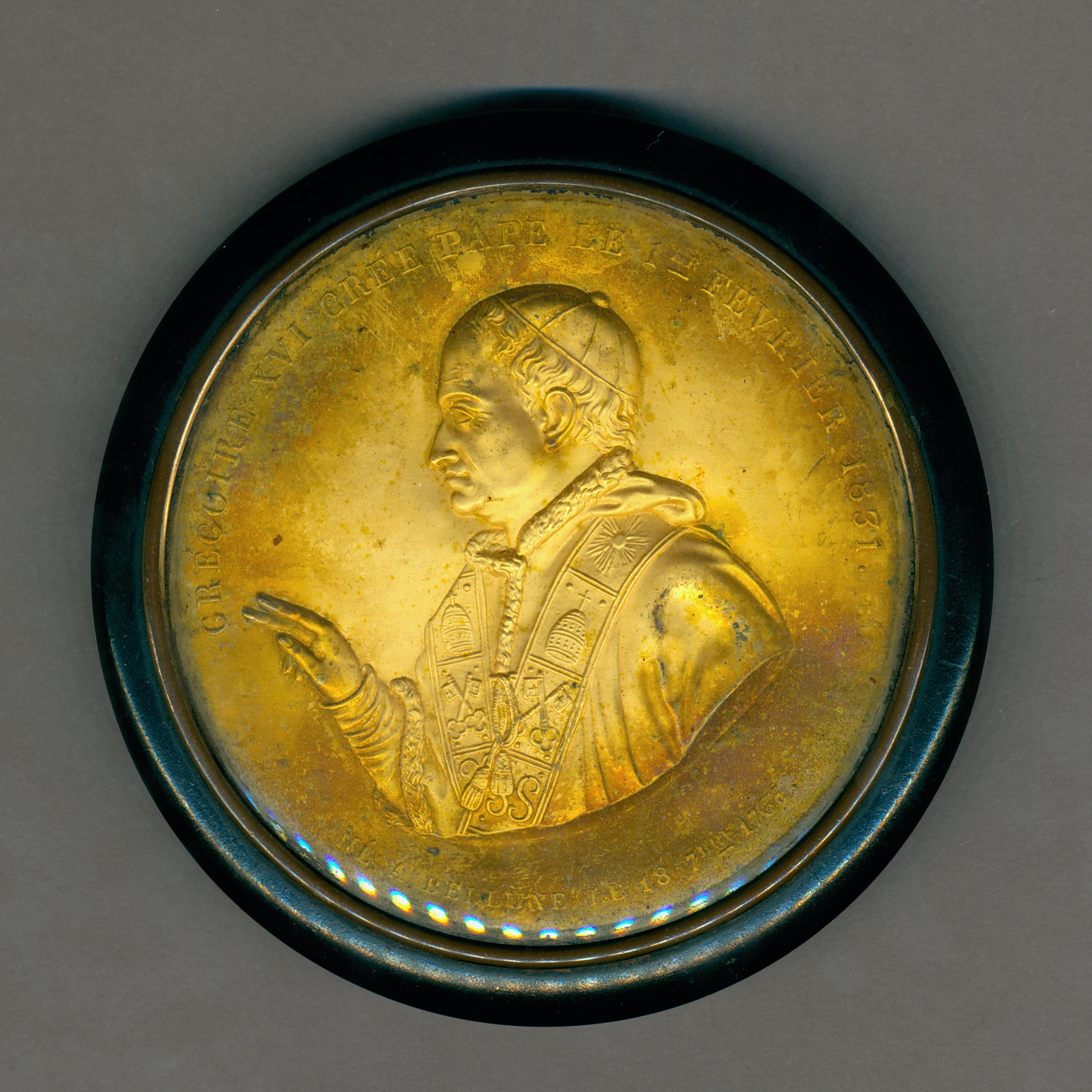Ronde doos met deksel met portret paus Gregorius XVI (1831-1846), kz. pauselijk wapen