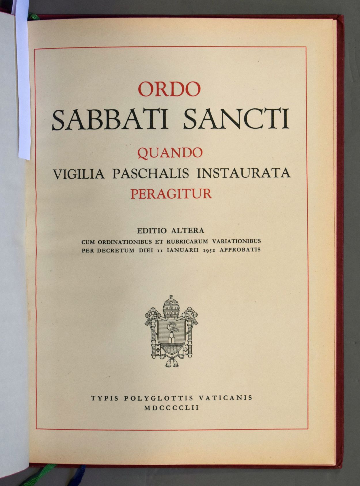 Ordo sabbati sancti quando vigilia paschalis instaurata peragitur : editio altera cum ordinationibus et rubricarum variationibus per decretum diei 11 ianuarii 1952 approbatis