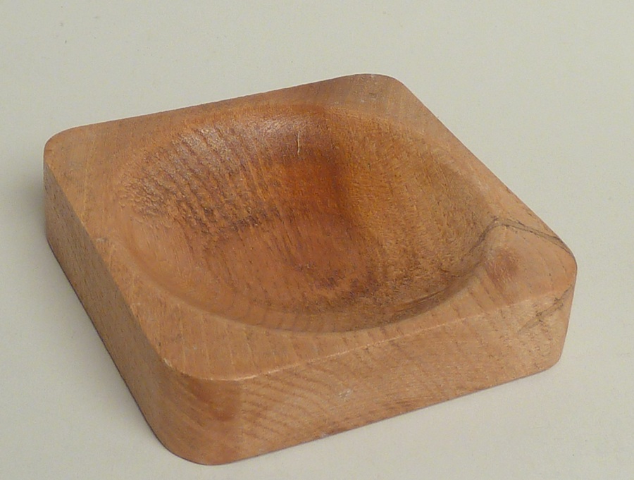 Houten bakje als onderzetter voor oliebakje, behorend bij bedieningsstel