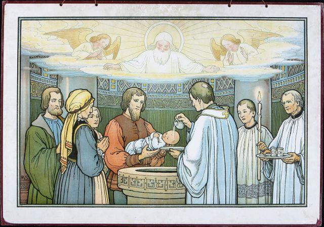 Serie schoolplaten met de sacramenten: nr. 50: H. Doopsel