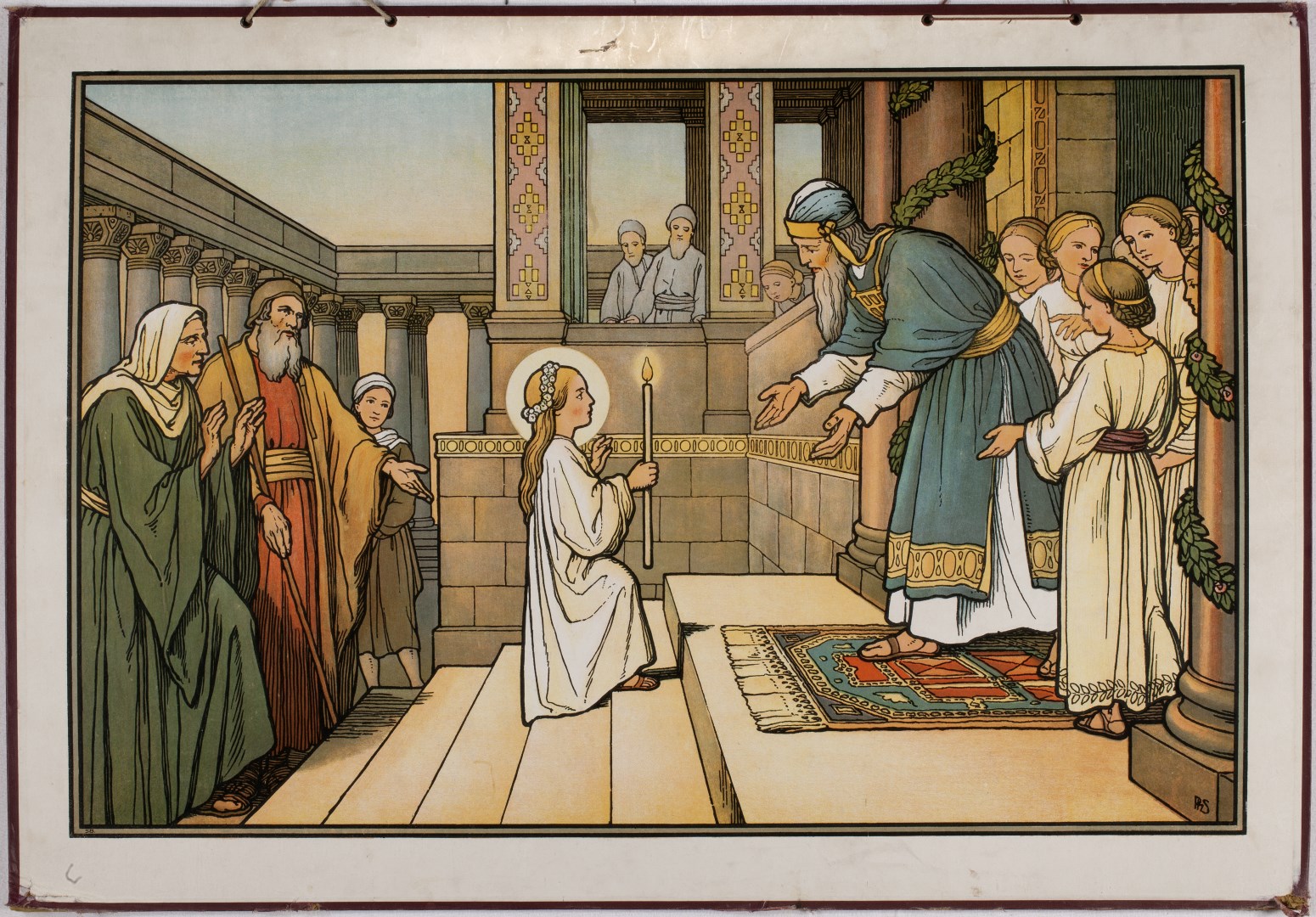 Serie schoolplaten O.T. en N.T.: nr. 58: Joachim en Anna presenteren Maria in de tempel