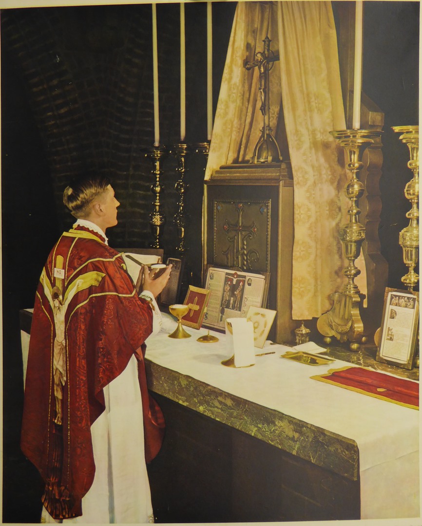 Serie schoolplaten, priester aan het altaar tijdens H. Mis: Suscipe sancte pater