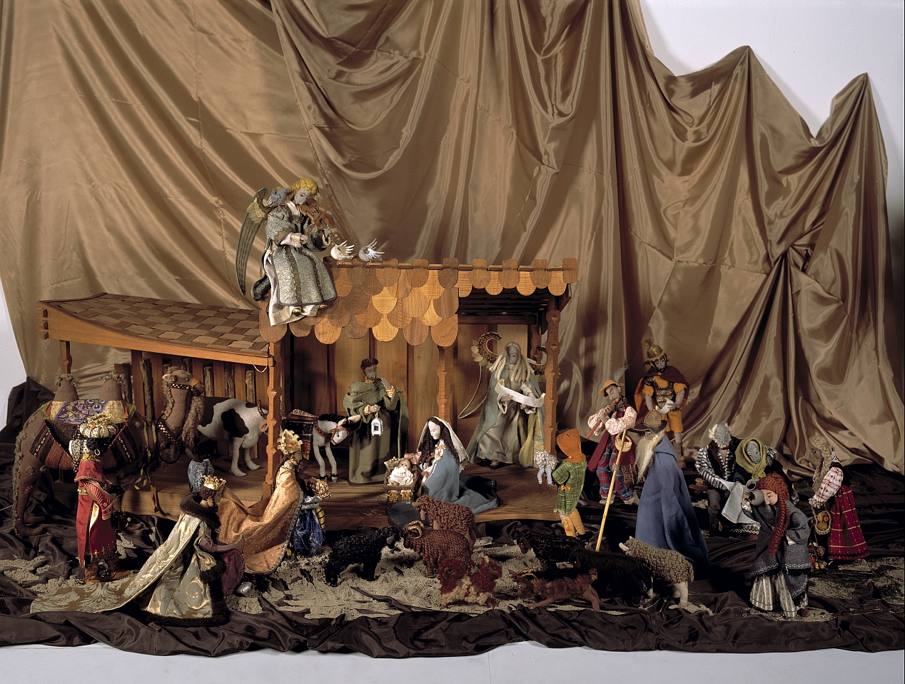 Kerststal met zitblok voor engel bestaande uit dertig onderdelen, behorend bij figuren StCC t146a enz.
