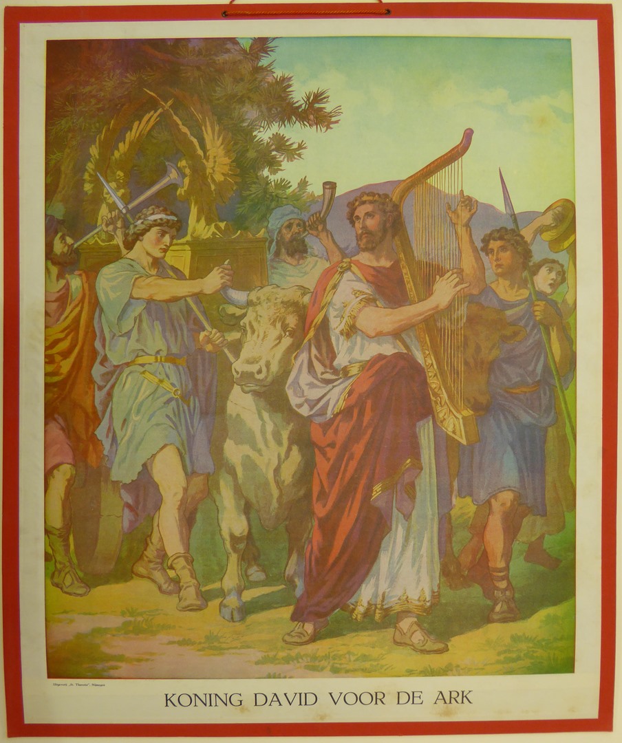 Koning David voor de ark, met harp spelende David