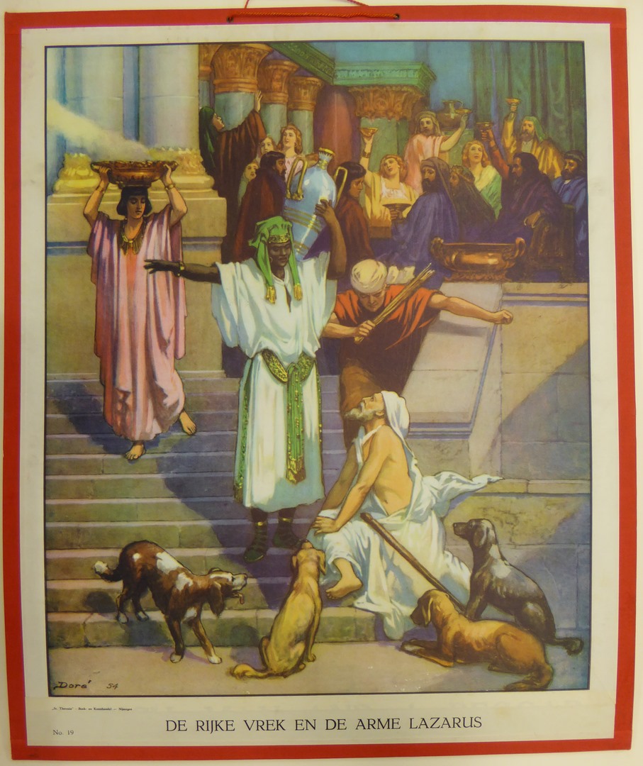 De rijke vrek en de arme Lazarus, met Lazarus omringd door honden op voorgrond