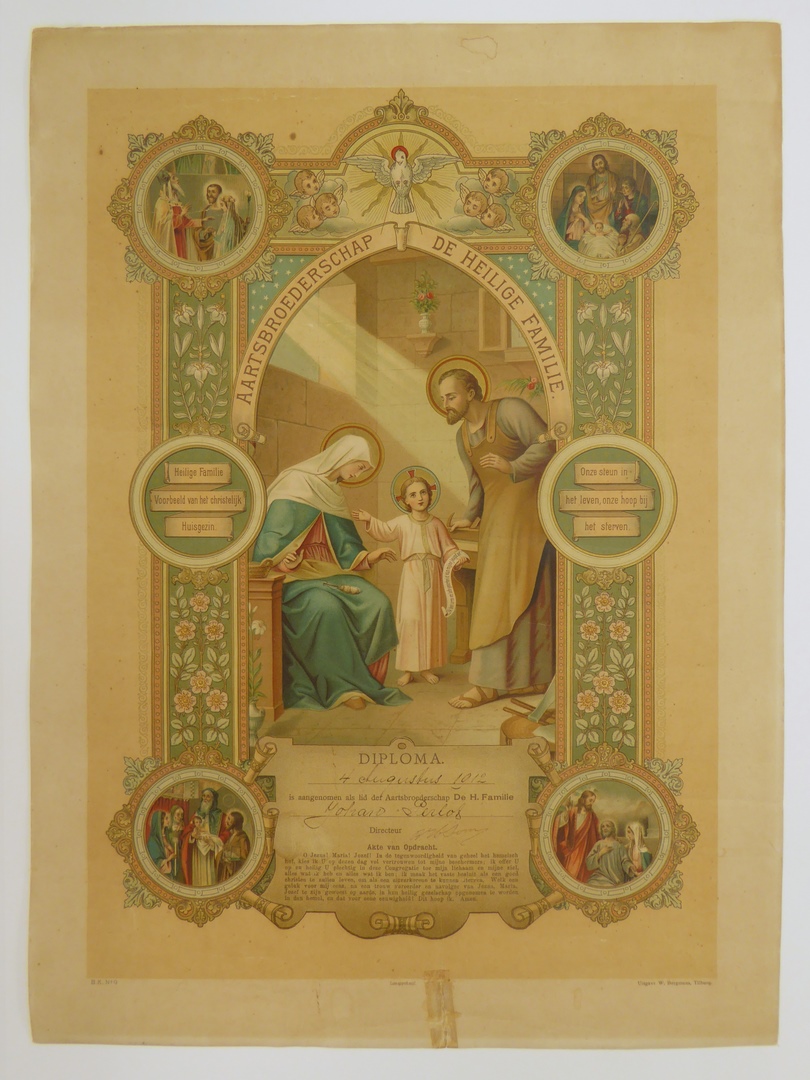 Lidmaatschapsdiploma van Aartsbroederschap van de H. Familie van de heer Perlot