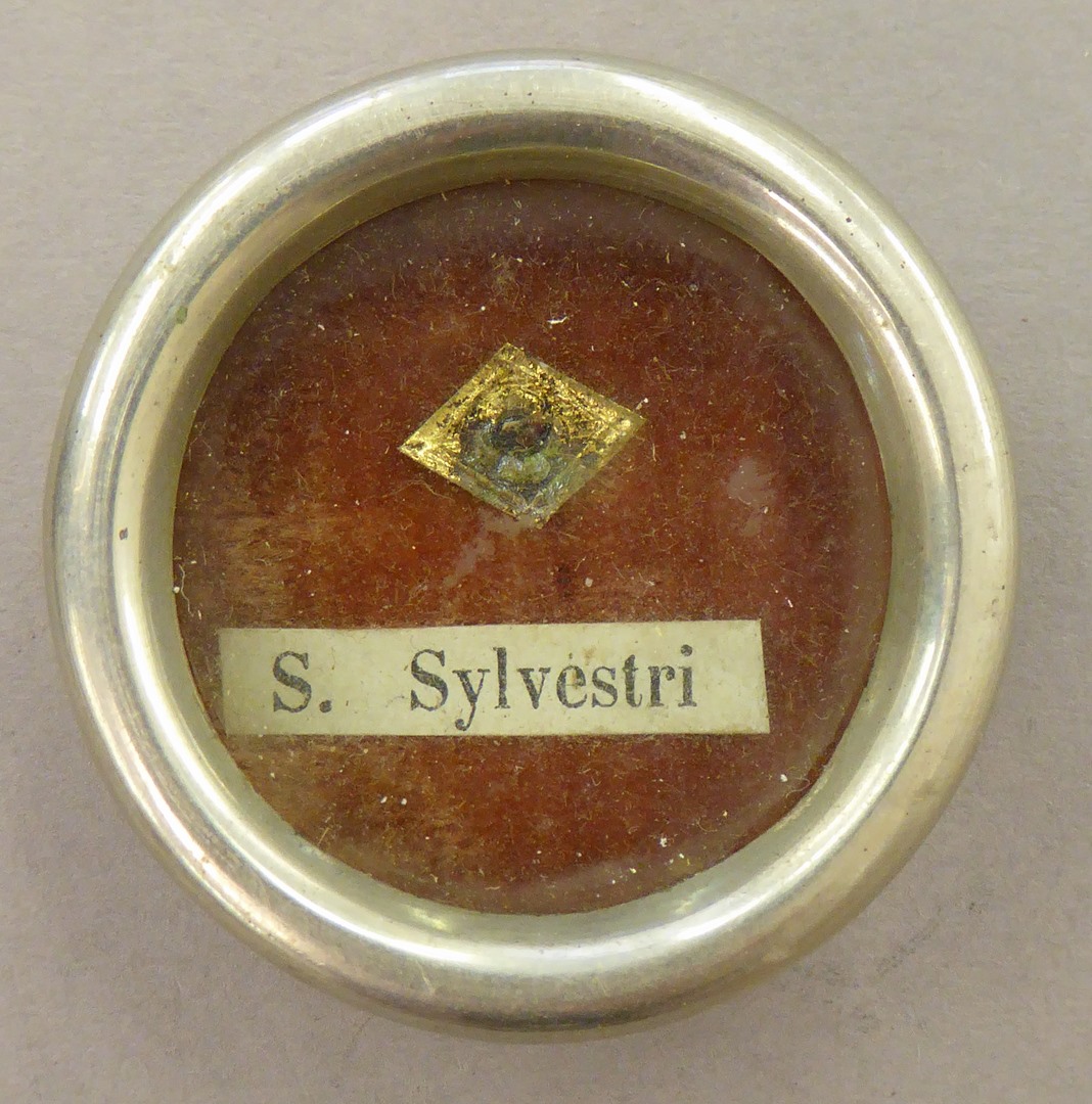 Reliekmedaillon met reliek St. Sylvester, met zegel aartsbisschop A.I. Schaepman