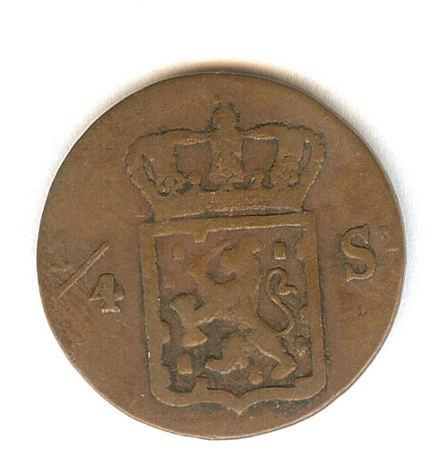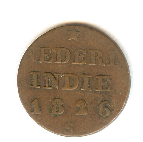 Kwart stuiver Nederlands-Indië, gekroond wapen van Nederland, keerzijde met opschrift Nederlands-Indië 1826 S