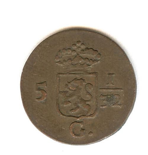 5 1/32 gulden Nederlands-Indië, gekroond wapen van Nederland, met opschrift INDIAE BATAV:1804