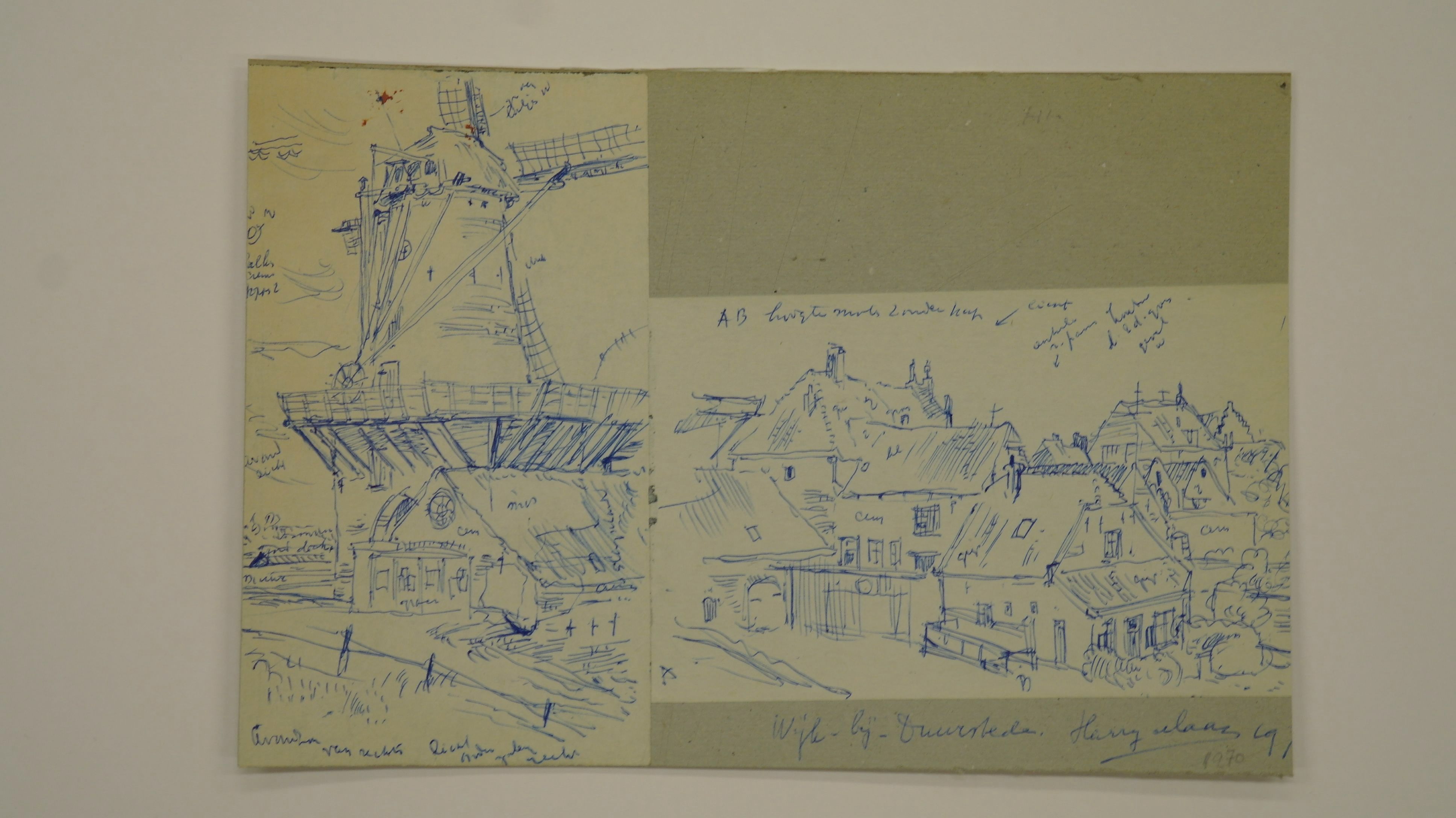Wijk bij Duurstede (Gezicht op stadshuizen), pen/papier op karton, 115 x 182 mm, gelocaliseerd, gesigneerd en gedateerd op karton m.o.: Wijk bij Duurstede Harry Maas 1970, HN-nr HMstn 096