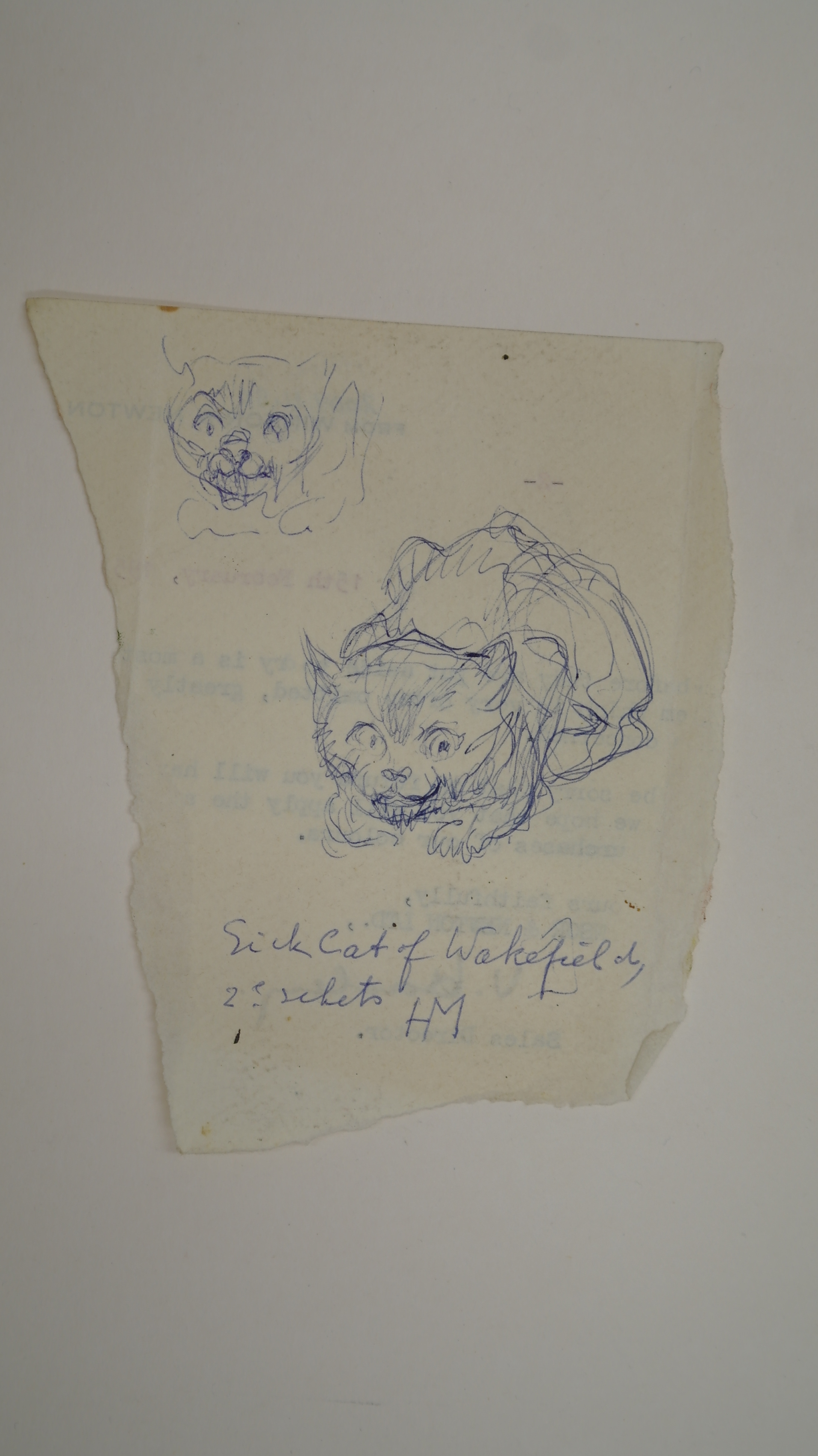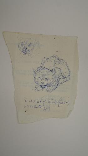 Sick cat of Wakefield, 2e schets - omstreeks 1970, pen/papier, 13 x 11cm, geannoteerd en gemonogrammeerd in pen m.o.:“Sick cat of Wakefield, 2e schets HM”, HN-nr HMstn 034 Sick cat of Wakefield, 2e schets - omstreeks 1970, pen/papier, 120 x 95 mm, geannoteerd en gemonogrammeerd in pen m.o.:“Sick cat of Wakefield, 2e schets HM”, HN-nr HMstn ...
