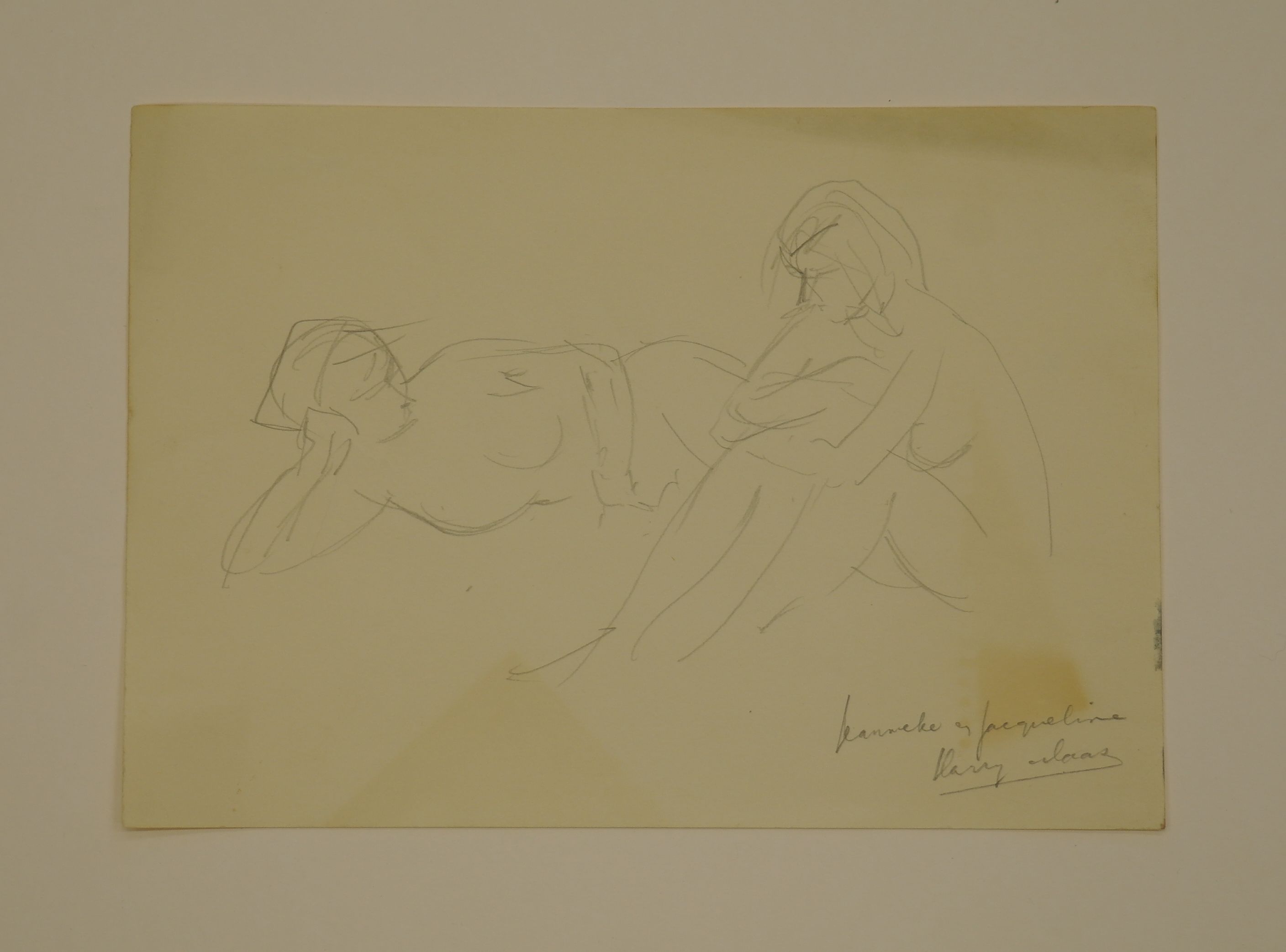 Hanneke en Jacqueline (liggende en zittende naakte vrouw), potlood/papier, geannoteerd en gesigneerd in potlood r.o.: “Hanneke en Jacqueline Harry Maas”, HN-nr HMstn 062 Hanneke en Jacqueline (liggende en zittende naakte vrouw), potlood/papier, 175 x 250 mm, geannoteerd en gesigneerd in potlood r.o.: “Hanneke en Jacqueline Harry Maas”, HN-nr HMstn 062