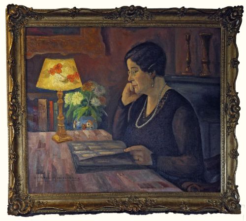 Portret van Maria Josephina (Fien) Vallen – Beek (Swalmen 1880 - 1967 Swalmen) – jaren 1930, olieverf/doek (zonder lijst), gesigneerd l.o.: Martin Roestenburg, 80 x 100 cm Maria Josephina Beek, roepnaam 'Fientje' , geboren te Swalmen 13-09-1880, overleden te Swalmen op 06-06-1967, trouwde eerst op 15-10-1917 te Swalmen met Robert Bernard Wilking (1882 -1918). Na deze ...