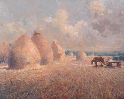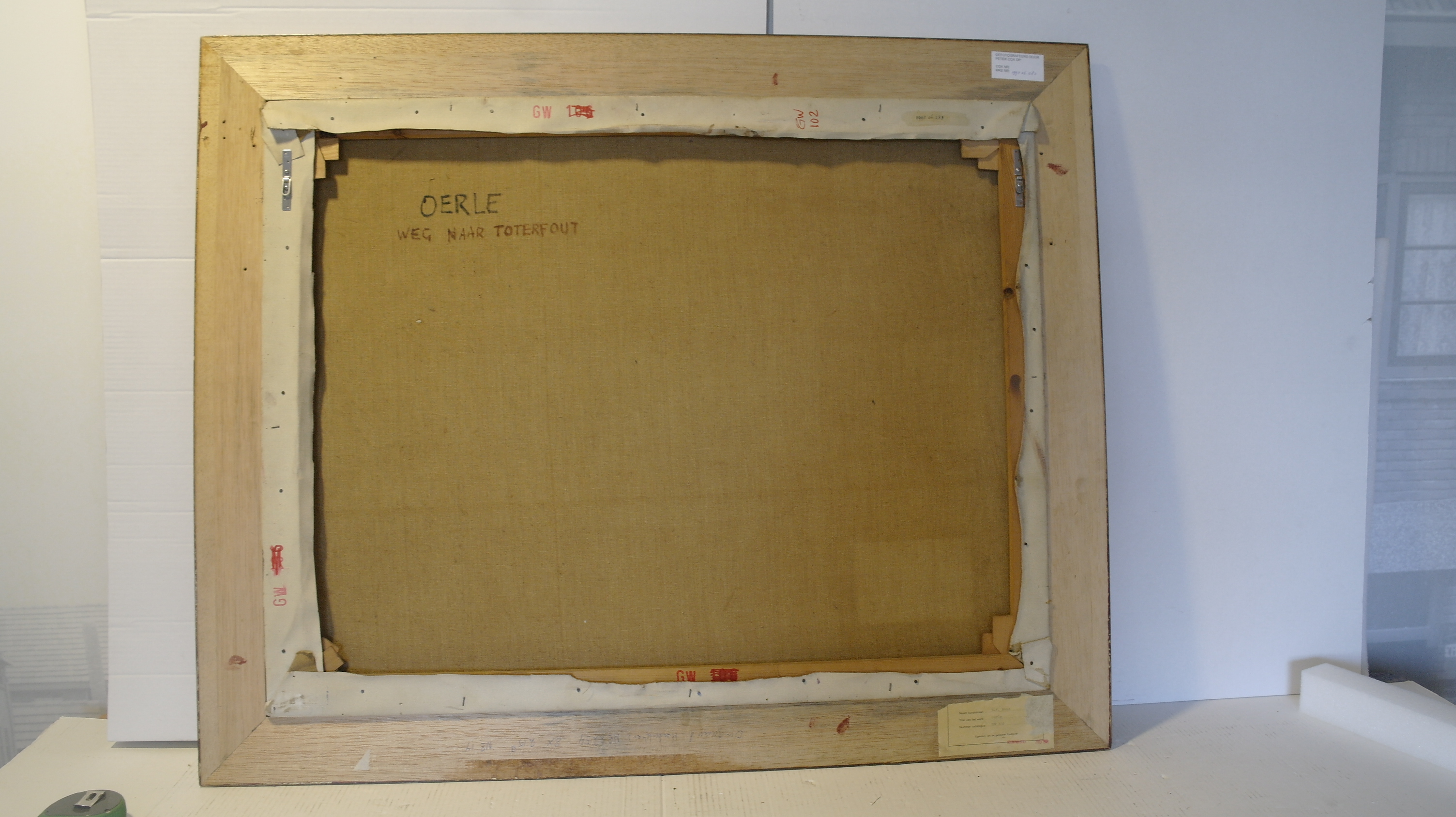 Hooioppers te Oerle (ook Oerle, weg naar Toterfout) - 1960, olieverf/doek, 70,5 x 90,5 cm, gesigneerd en gedateerd m.o.: Harry Maas 1960 gesigneerd en gedateerd m.o.: Harry Maas 1960 inventarisnummer sociale dienst: GW 102 bedrag BKR: ƒ 425,-