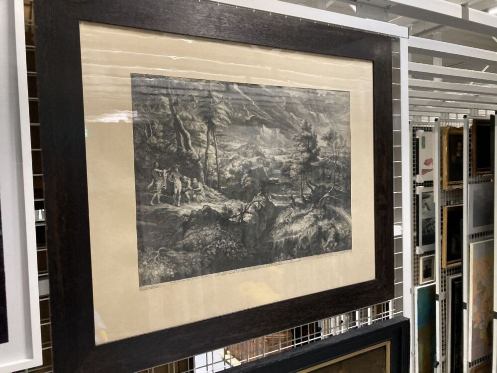 Afdruk (diepdruk) van een metalen plaat waarin met een burijn een voorstelling is gestoken. Onder druk verschijnt de ingepoetste inkt in de verdiepte lijnen als een voorstelling op het papier. Een gravure kan zijn ingekleurd nadat deze is gedrukt. https://data.cultureelerfgoed.nl/term/id/cht/0b751220-3066-47af-b136-3a7ecde465e4