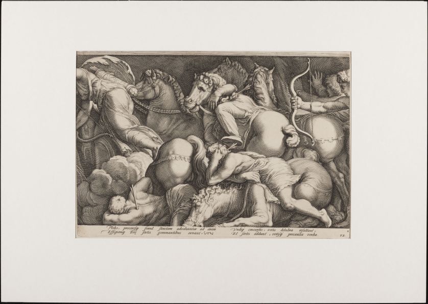 Afdruk (diepdruk) van een metalen plaat waarin met een burijn een voorstelling is gestoken. Onder druk verschijnt de ingepoetste inkt in de verdiepte lijnen als een voorstelling op het papier. Een gravure kan zijn ingekleurd nadat deze is gedrukt. https://data.cultureelerfgoed.nl/term/id/cht/0b751220-3066-47af-b136-3a7ecde465e4