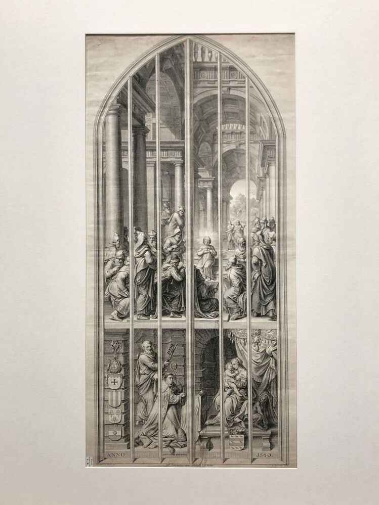 Gebrandschilderd raam te Gouda met Christus in de tempel