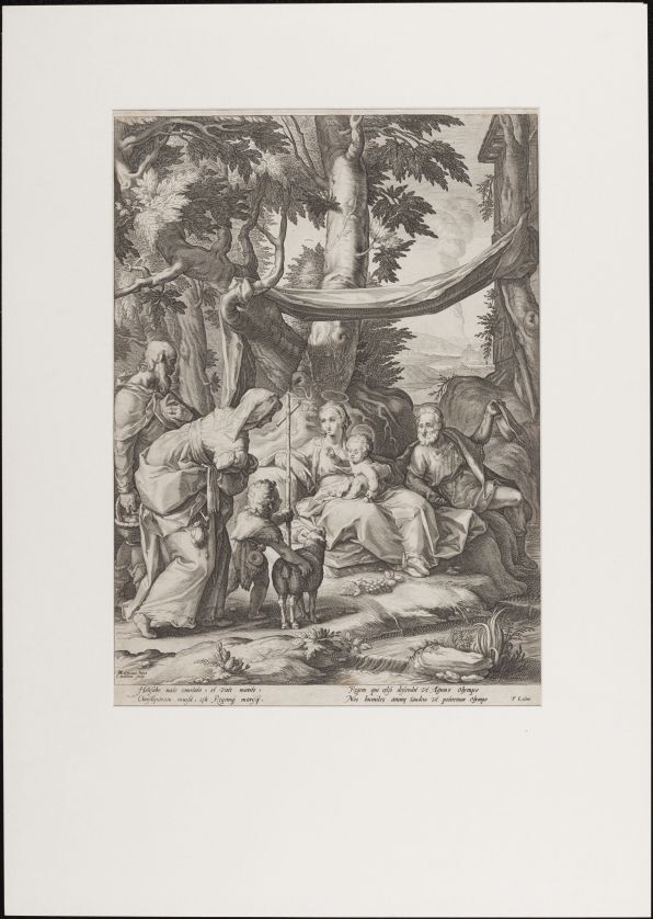 Rustende heilige familie met Elizabeth, Johannes en Zacharias