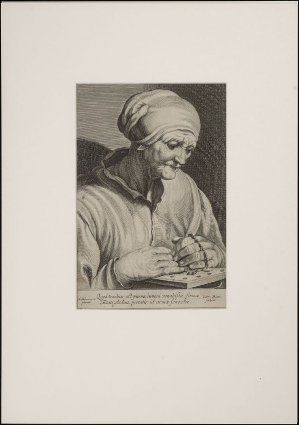 Oude vrouw met rozenkrans