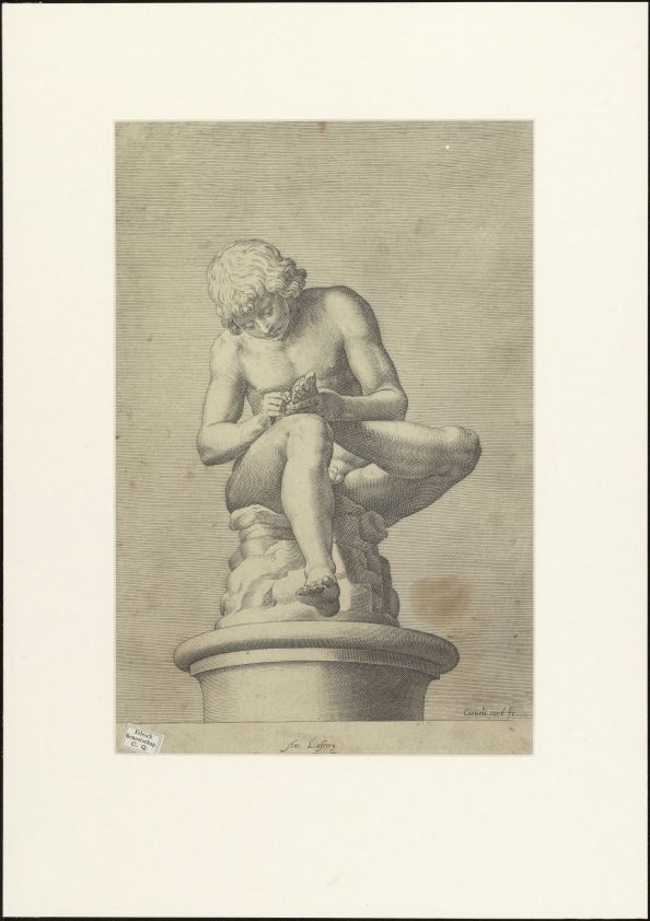 Afdruk (diepdruk) van een metalen plaat waarin met een burijn een voorstelling is gestoken. Onder druk verschijnt de ingepoetste inkt in de verdiepte lijnen als een voorstelling op het papier. Een gravure kan zijn ingekleurd nadat deze is gedrukt. https://data.cultureelerfgoed.nl/term/id/cht/0b751220-3066-47af-b136-3a7ecde465e4