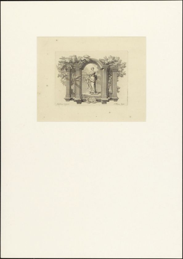 Cartouche met vrouw met zweep en monster aan de lijn