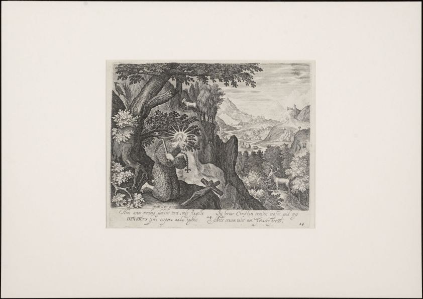 De Heilige Hendrik in ketenen gewikkeld in een landschap