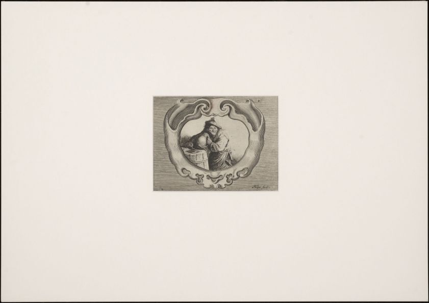 Drinkende boer in cartouche