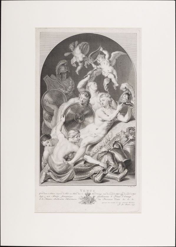 Afdruk (diepdruk) van een metalen plaat waarin met een burijn een voorstelling is gestoken. Onder druk verschijnt de ingepoetste inkt in de verdiepte lijnen als een voorstelling op het papier. Een gravure kan zijn ingekleurd nadat deze is gedrukt. https://data.cultureelerfgoed.nl/term/id/cht/0b751220-3066-47af-b136-3a7ecde465e4