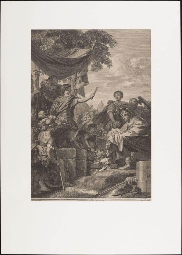 Afdruk (diepdruk) van een metalen plaat waarin met een burijn een voorstelling is gestoken. Onder druk verschijnt de ingepoetste inkt in de verdiepte lijnen als een voorstelling op het papier. Een gravure kan zijn ingekleurd nadat deze is gedrukt. https://data.cultureelerfgoed.nl/term/id/cht/0b751220-3066-47af-b136-3a7ecde465e4