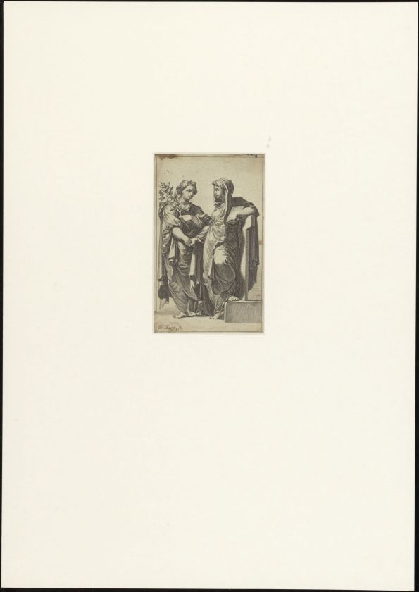 Vrouw met boek en man met tak