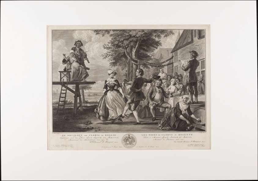 Afdruk (diepdruk) van een metalen plaat waarin met een burijn een voorstelling is gestoken. Onder druk verschijnt de ingepoetste inkt in de verdiepte lijnen als een voorstelling op het papier. Een gravure kan zijn ingekleurd nadat deze is gedrukt. https://data.cultureelerfgoed.nl/term/id/cht/0b751220-3066-47af-b136-3a7ecde465e4