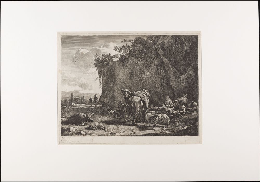 Landschap met heders, spinnende vrouw en vee