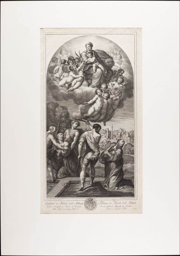 Afdruk (diepdruk) van een metalen plaat waarin met een burijn een voorstelling is gestoken. Onder druk verschijnt de ingepoetste inkt in de verdiepte lijnen als een voorstelling op het papier. Een gravure kan zijn ingekleurd nadat deze is gedrukt. https://data.cultureelerfgoed.nl/term/id/cht/0b751220-3066-47af-b136-3a7ecde465e4