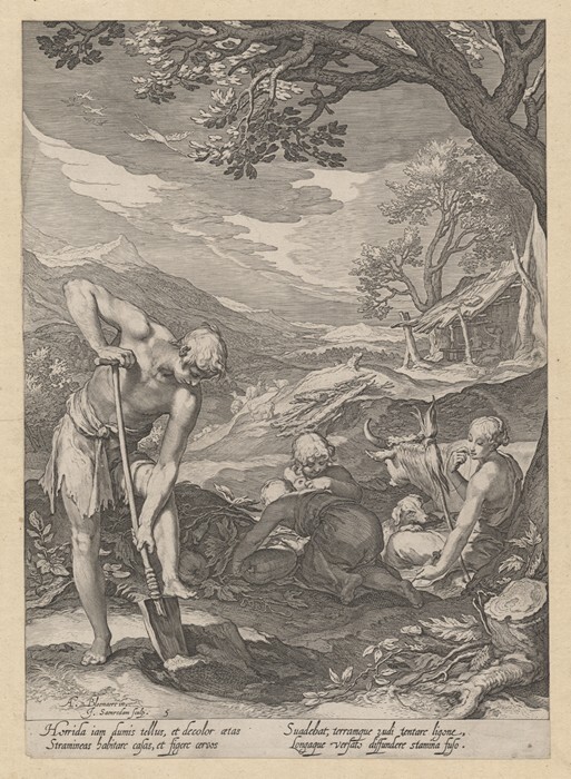 Adam en Eva aan het werk buiten het Aards Paradijs
