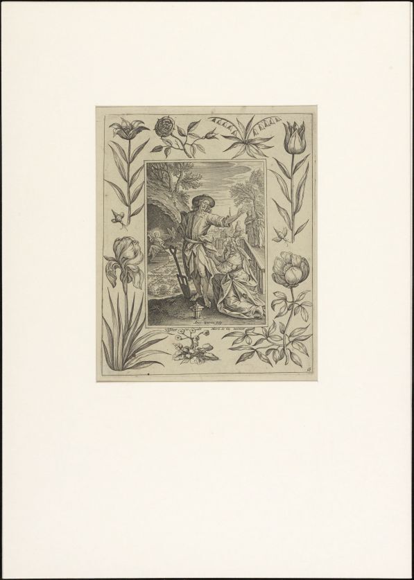 Afdruk (diepdruk) van een metalen plaat waarin met een burijn een voorstelling is gestoken. Onder druk verschijnt de ingepoetste inkt in de verdiepte lijnen als een voorstelling op het papier. Een gravure kan zijn ingekleurd nadat deze is gedrukt. https://data.cultureelerfgoed.nl/term/id/cht/0b751220-3066-47af-b136-3a7ecde465e4